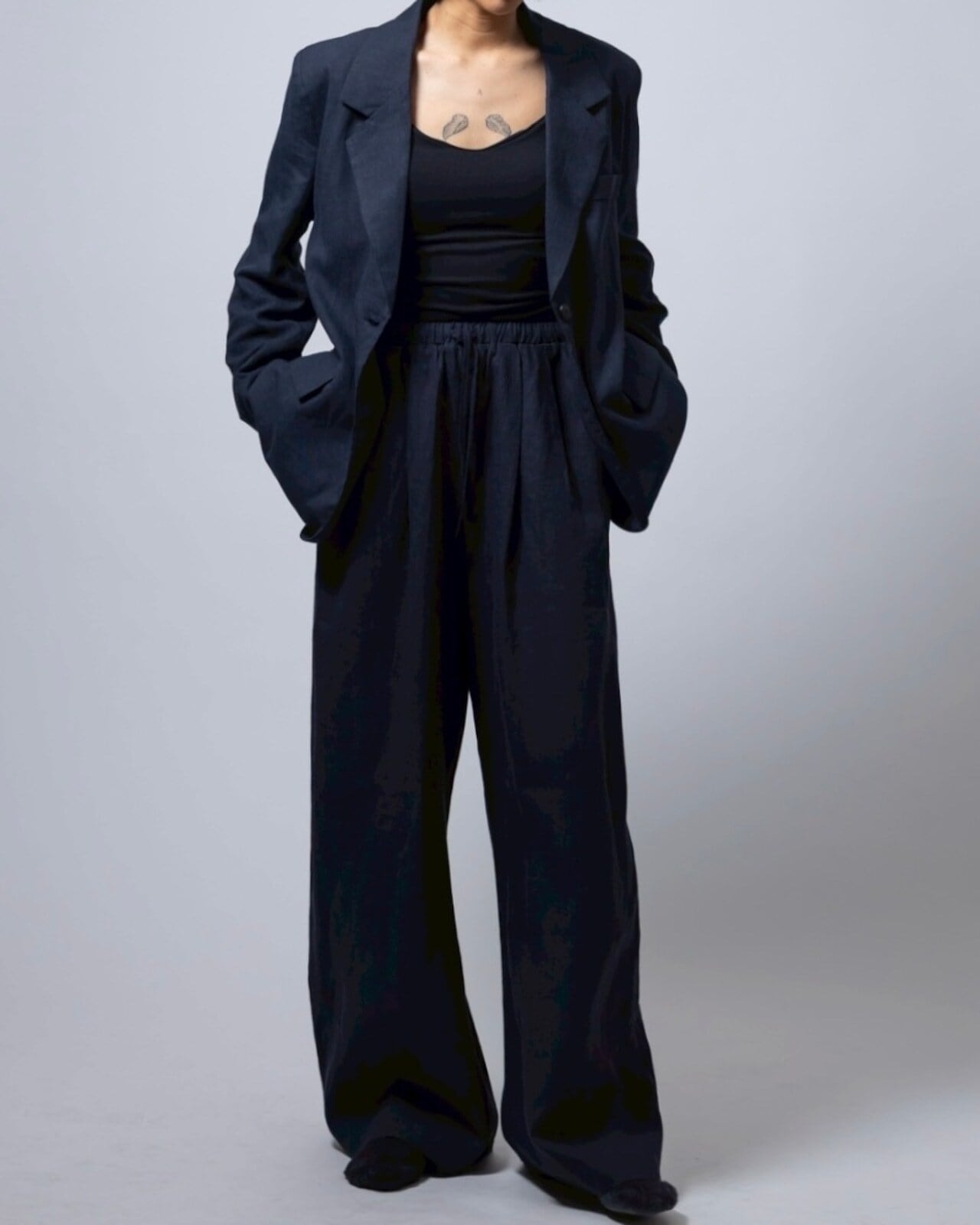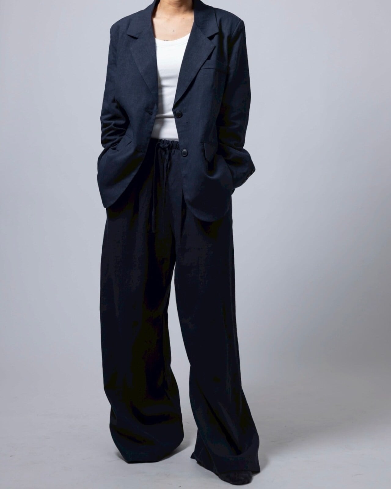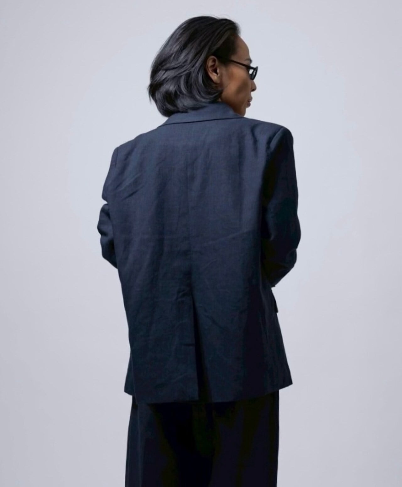 ストンと落ちるので着ると縦のラインが綺麗に出る仕様に仕立てています。