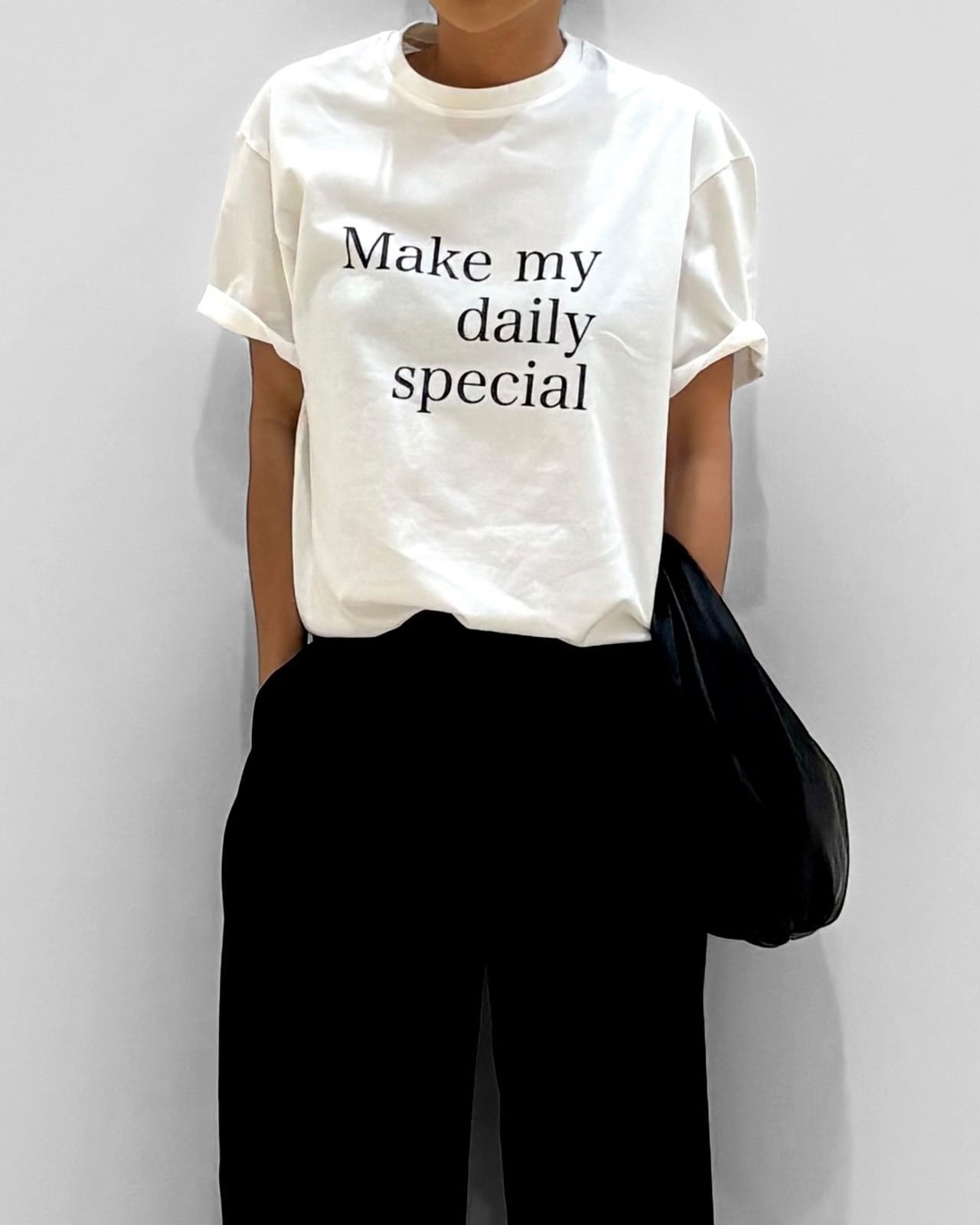 Make your daily special.をもじって"わたしの日常を特別に"という意のプリントが施されいます❤︎