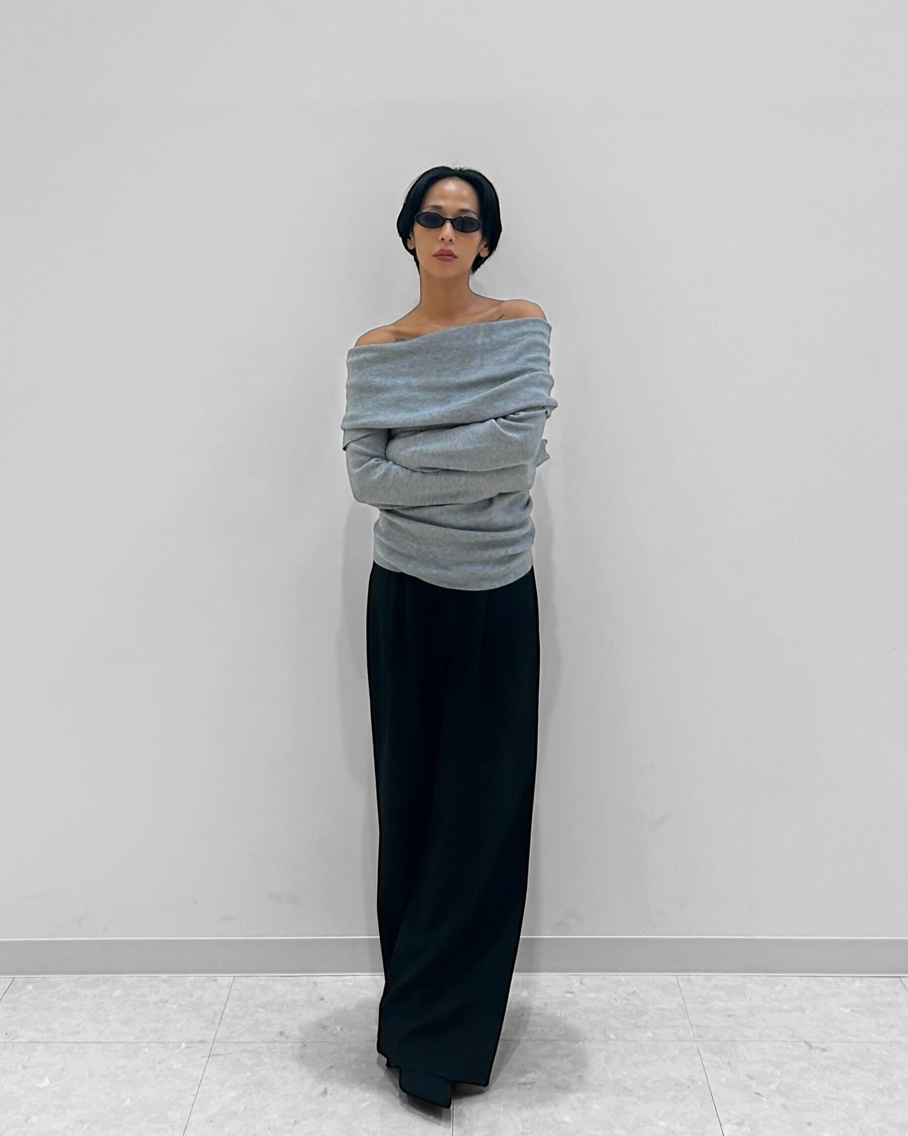 ボトムにインしてスタイリングはもちろんですが、アウトでスタイリングするのがポイントです◎