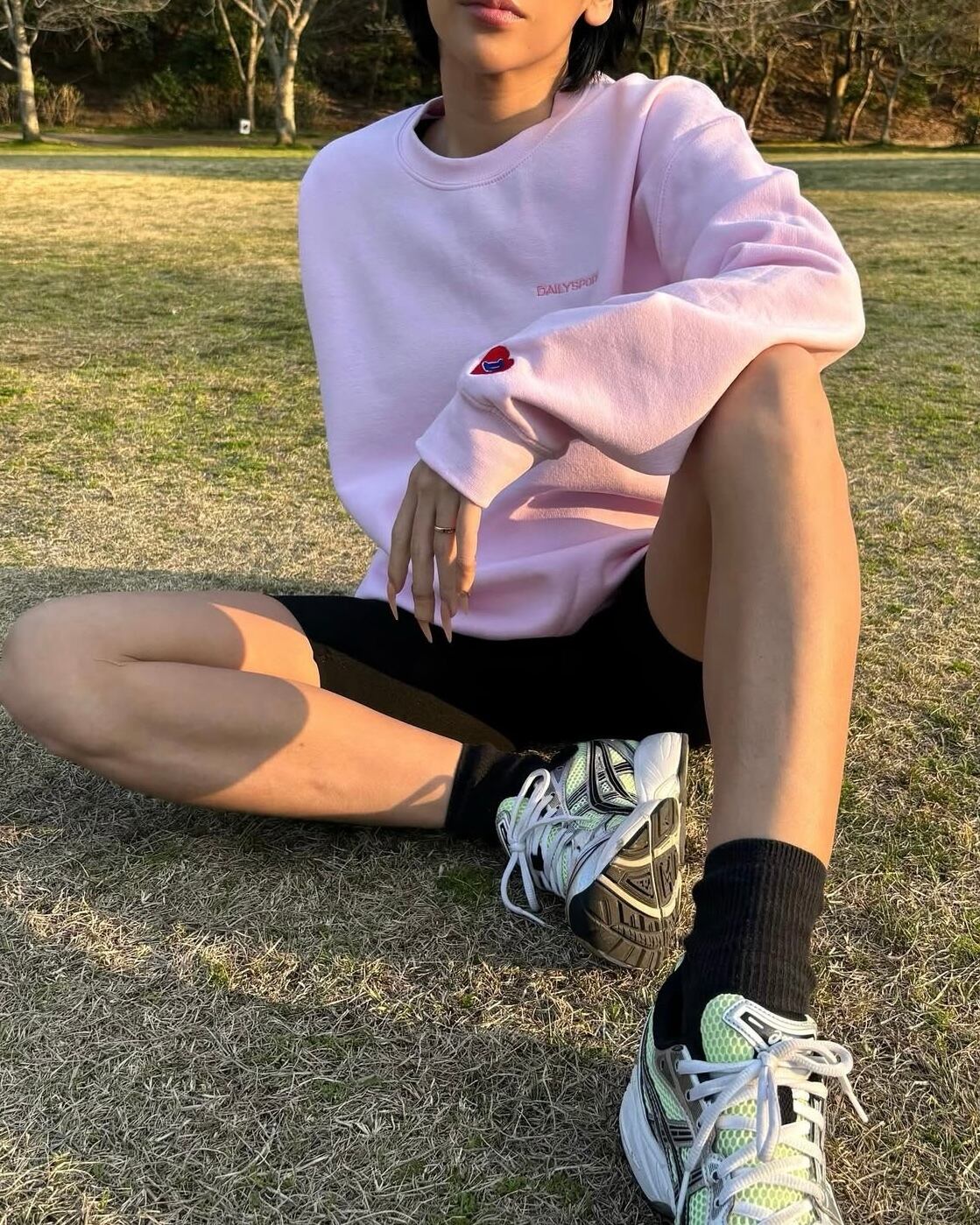 左胸にボディ同色のDAILYSPORTロゴ刺繍、左袖にオリジナルのハートロゴの刺繍が入っています。