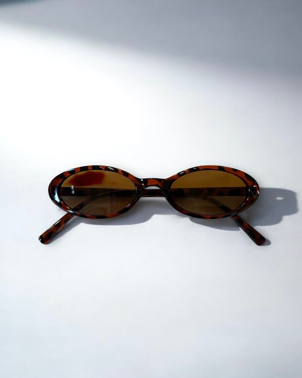 スリムなフォルムで横長なオーバルシェイプサングラス。
